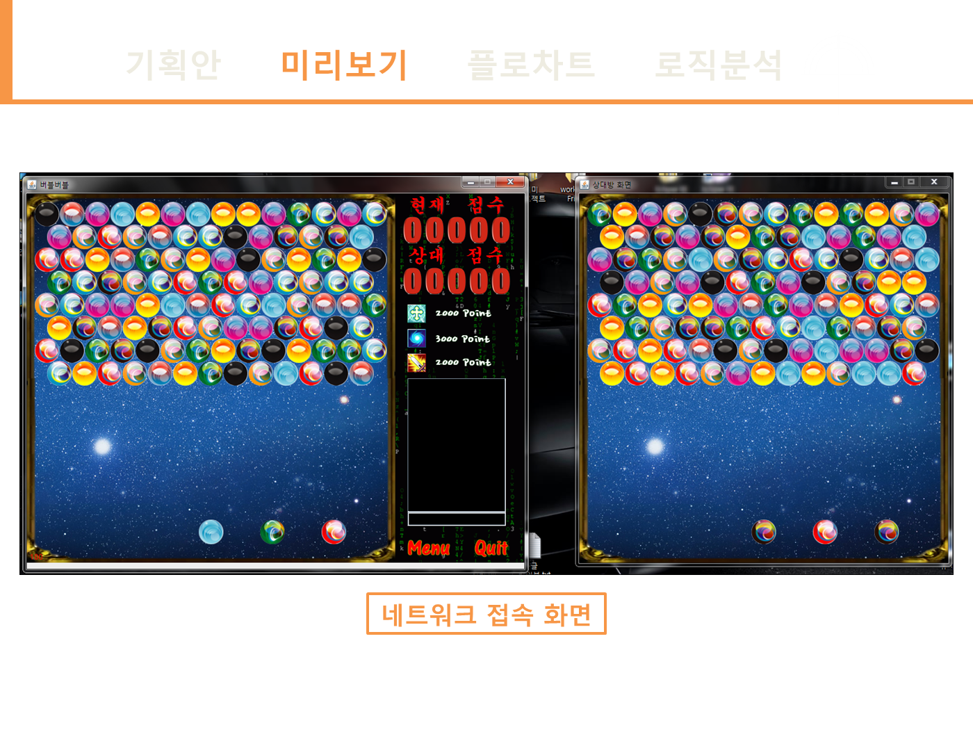 - 포인트를 사용한 아이템 기능 : 구슬 한줄 삭제, 상대방 구슬 한줄 추가, 원하는 구슬 영구삭제