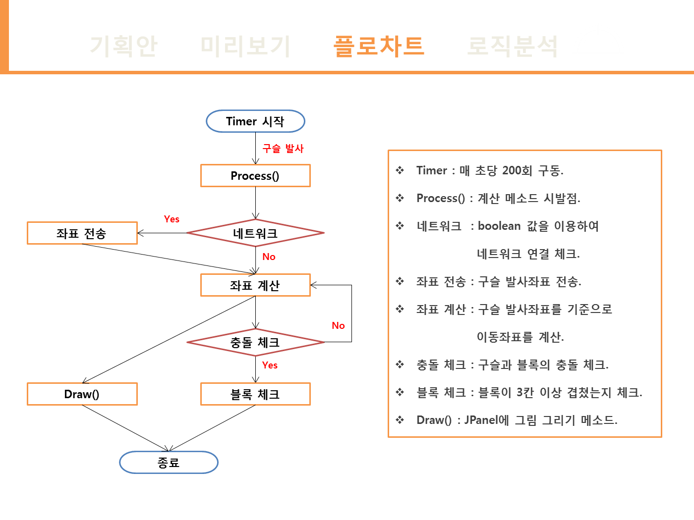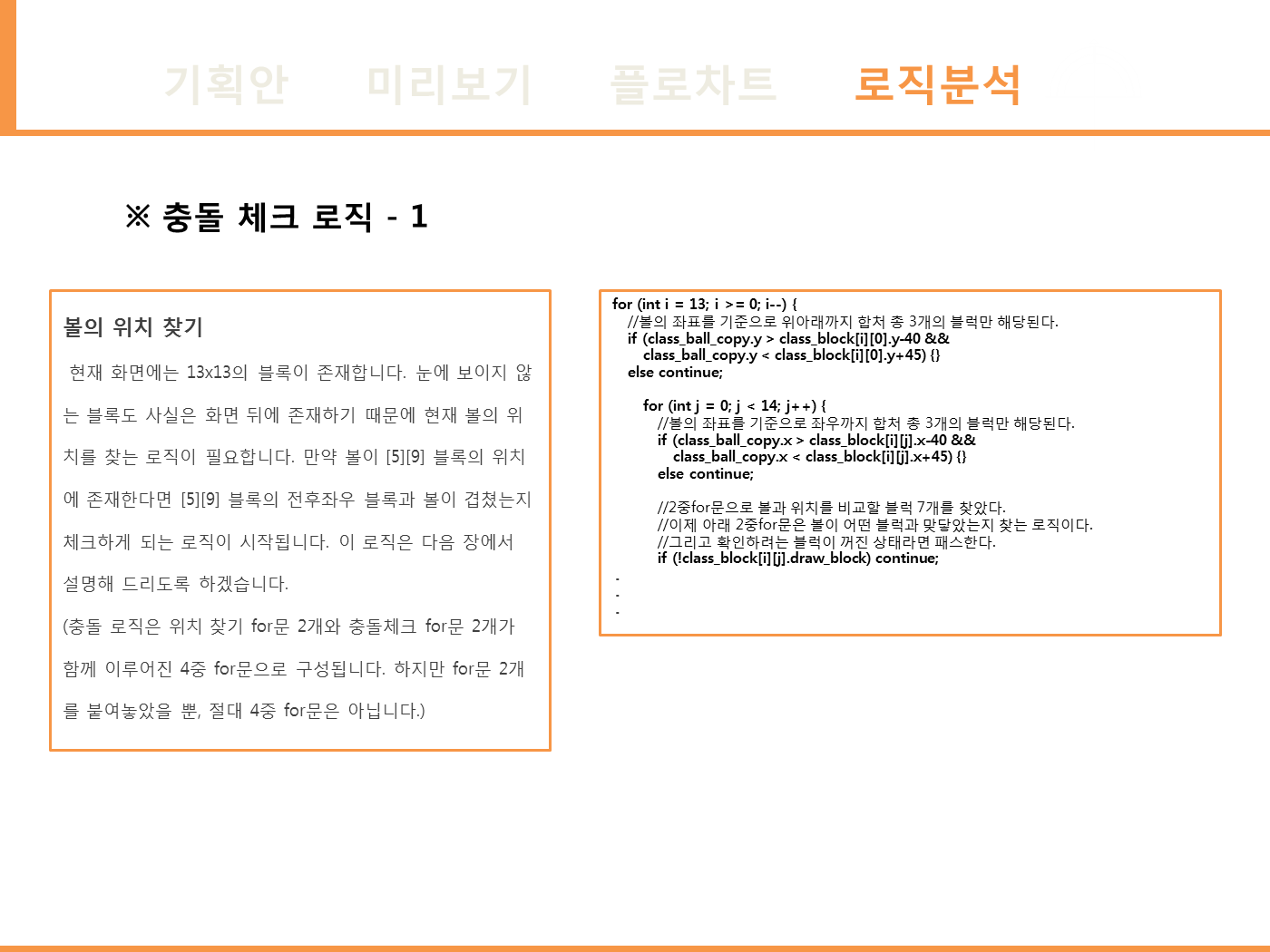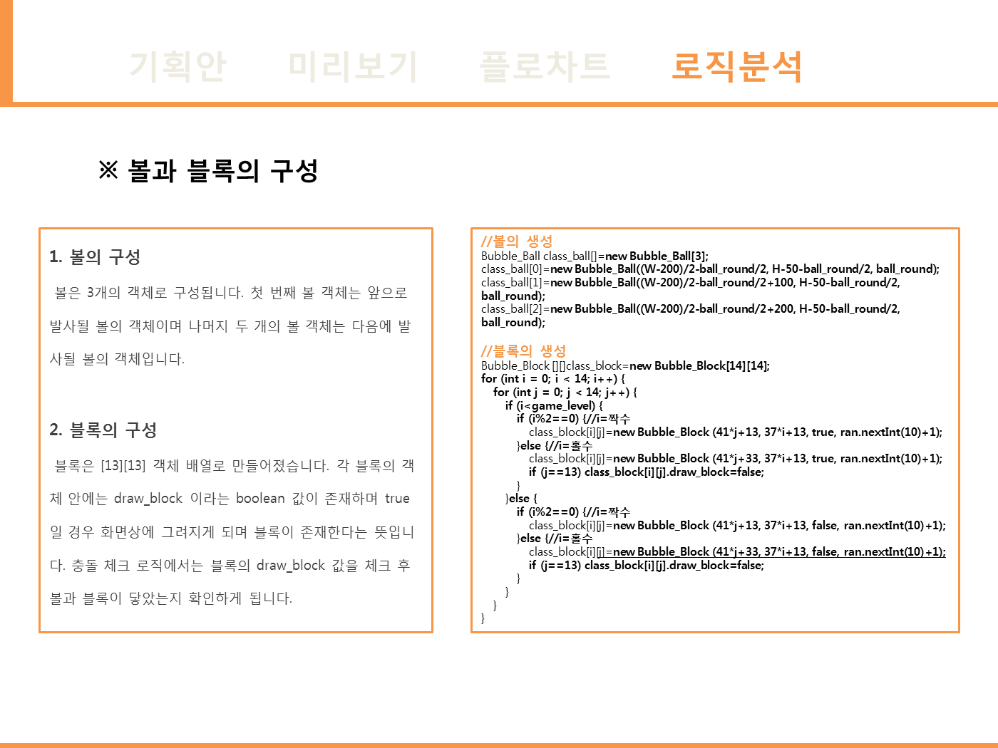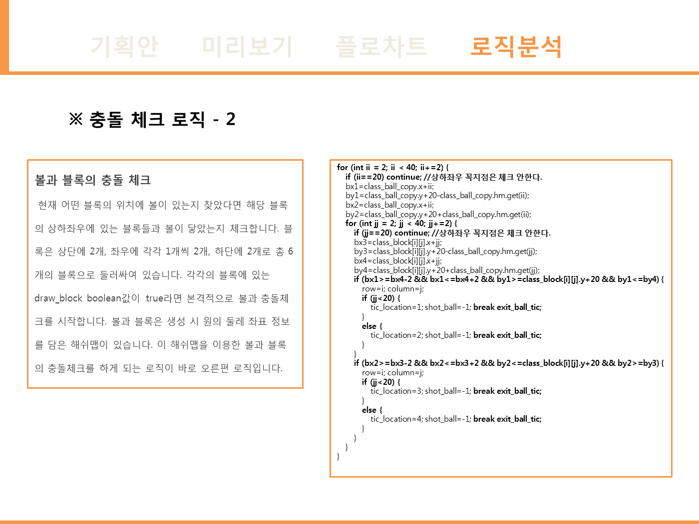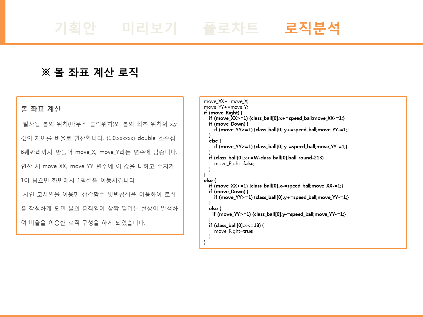 - 구슬 충돌 체크 로직 : sin을 이용한 구슬의 둘레 좌표를 저장한 뒤 충돌체크를 구현하였습니다.